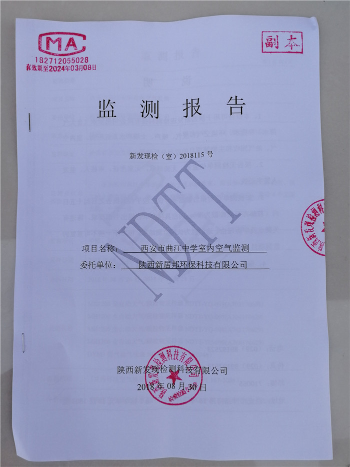 目前,全部項目已經(jīng)獲得權(quán)威第三方CMA驗收復(fù)檢,全部空氣指標(biāo)均由于國際標(biāo)準(zhǔn)!