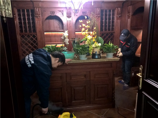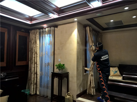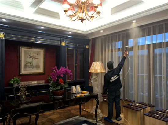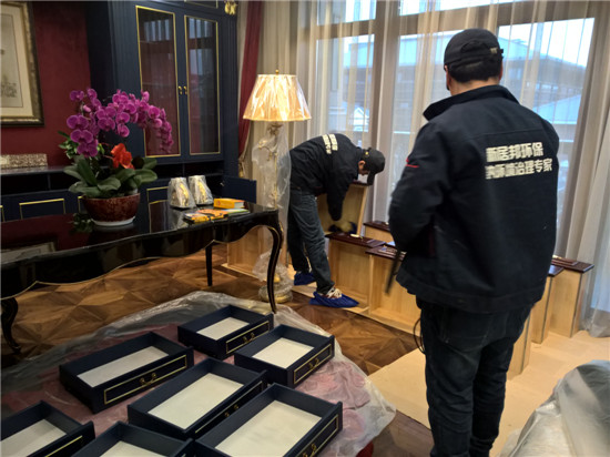 本次由陜西新居邦環(huán)保科技有限公司承接的西安曲江皇家花園別墅全屋空氣凈化服務(wù),歷時三天,總甲醛治理建筑面積超1000平方,共五層。新居邦環(huán)保技術(shù)團(tuán)隊在充分研究別墅高檔豪華裝修、全屋進(jìn)口家具、全實木花梨木成套柜體、實木地板等全屋環(huán)境及污染源構(gòu)成后,分別采取高溫?zé)峤馀浜蠠犸L(fēng)槍祛除實木家具外飾油漆異味、高分子聚合技術(shù)無縫覆蓋軟體家居、立美凈除醛凈味雙效觸媒高效噴涂木制柜體、立美凈超活性納米光觸媒全屋長效凈化等綜合施工技術(shù),從空氣異味釋放源、甲醛長期釋放源等源頭上解決并提升空氣質(zhì)量。