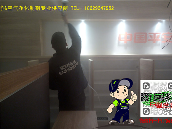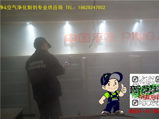 中國平安延安分公司三層辦公大樓共計1500余平方,經(jīng)過重裝升級,室內(nèi)裝修異味比較明顯,新居邦除甲醛公司承接了本次室內(nèi)空氣凈化除甲醛工程,以下是施工現(xiàn)場照片: