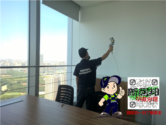 本工程為位于高新綠地中心45層的陜西恒通果汁集團(tuán)股份有限公司辦公室,整體除甲醛凈化施工面積為2100平方,全密封玻璃幕墻設(shè)計(jì),通風(fēng)情況不佳,室內(nèi)異味明顯,新居邦環(huán)保科技的專業(yè)技術(shù)服務(wù)能力贏得了集團(tuán)公司領(lǐng)導(dǎo)的認(rèn)可,本次辦公室甲醛治理,室內(nèi)空氣凈化工程共2天,經(jīng)過處理以后室內(nèi)空氣質(zhì)量獲得極大改善,順利通過CMA第三方驗(yàn)收,以下是部分施工現(xiàn)場(chǎng)照片
